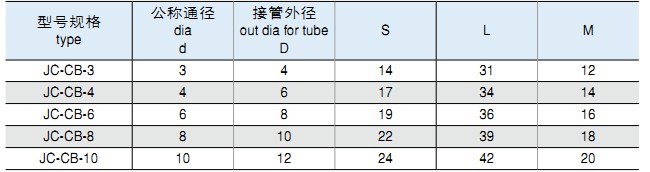 一、JC系列插入式管接頭,適用于連接硬質(zhì)、半硬質(zhì)尼龍管、塑料管,最大工作壓力為1.0MPa。該系列管接頭安裝方便,密封可