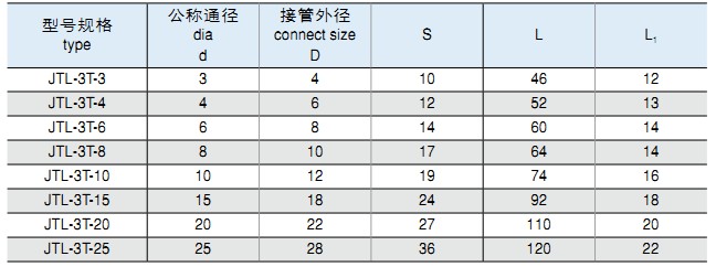 一、JT系列卡套式管接頭適用于有色金屬管,編織尼龍管的連接。最大工作壓力為1.0MPa。