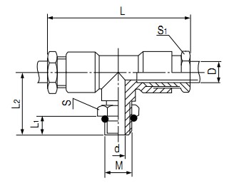 ②:卡套式三通終端變徑管接頭 公稱通徑Ø6MM B=8MM C=4MM JT-3T-Z6-8-4 M10×1