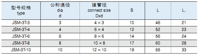 一、JSM系列鎖母式管接頭,適用于連接尼龍管、塑料管,最大工作壓力為1.0MPa。該系列管接頭具有使用方便,安裝牢固等優(yōu)點(diǎn)。