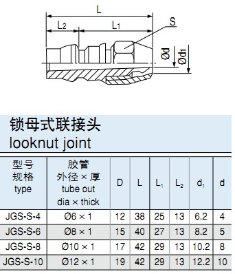 型號規(guī)格說明,下圖例JGS-W-6A(JGS-K-6B)插入式外螺紋接口。高性能快速接頭,外插式內(nèi)螺紋接口。