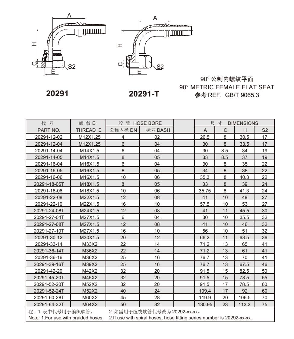 20291 90°公制內(nèi)螺紋平面 扣壓式軟管接頭