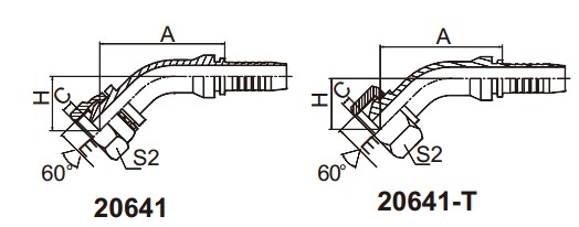 20641 45°公制內(nèi)螺紋60°外錐面 扣壓式軟管接頭
