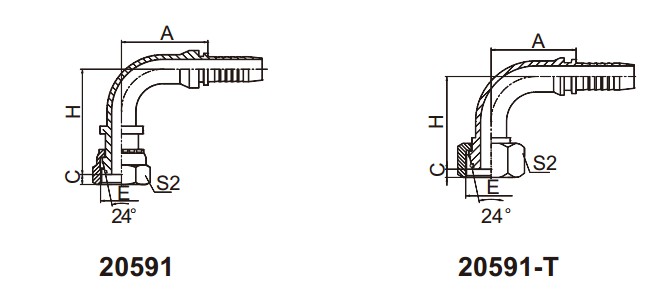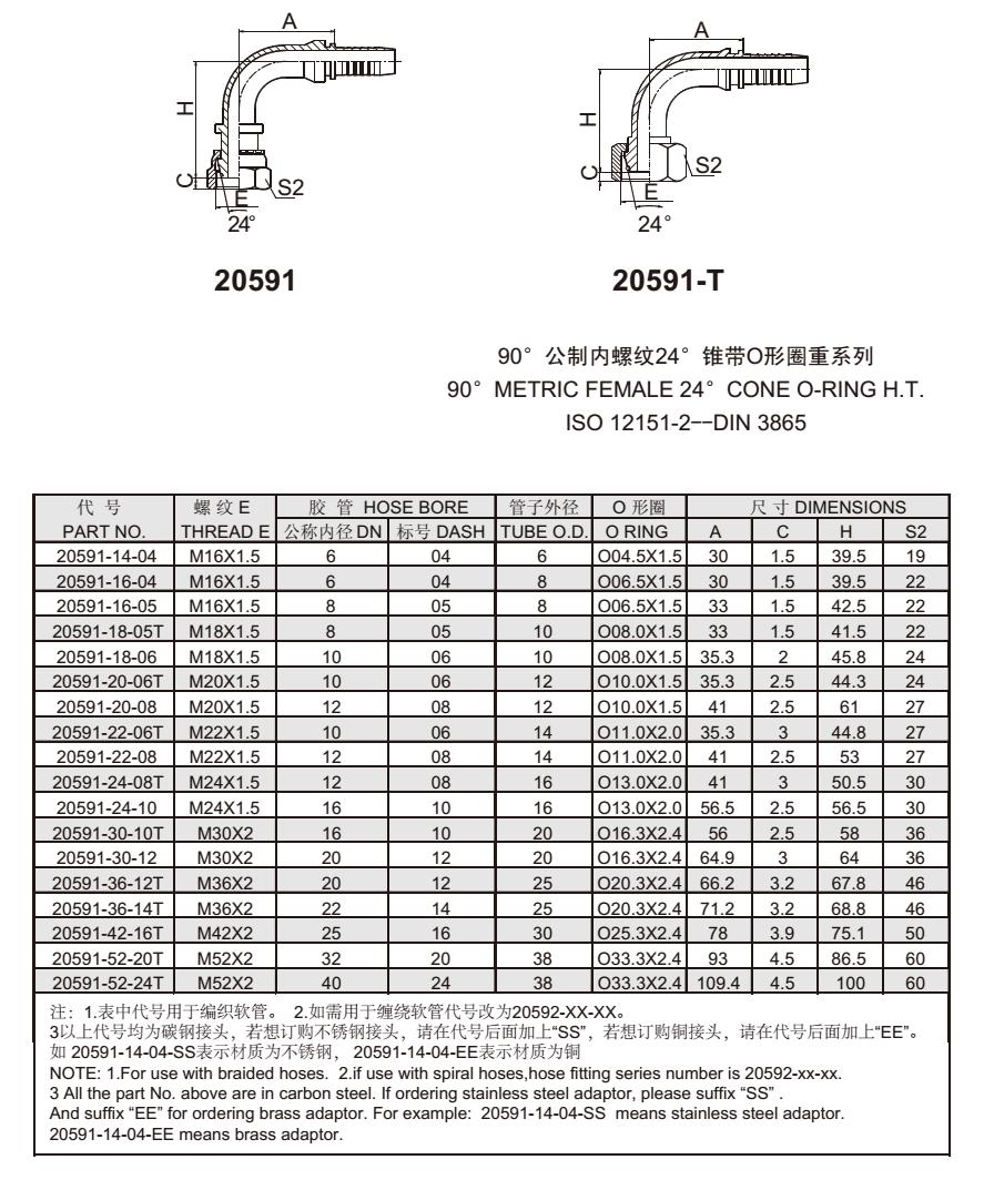 20591 90°公制內(nèi)螺紋24°錐帶O形圈重系列 扣壓式軟管接頭