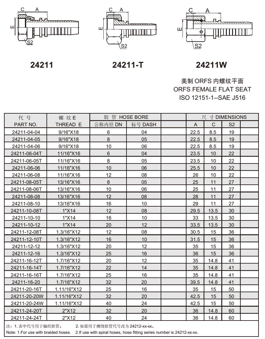 24211 美制ORFS內螺紋平面