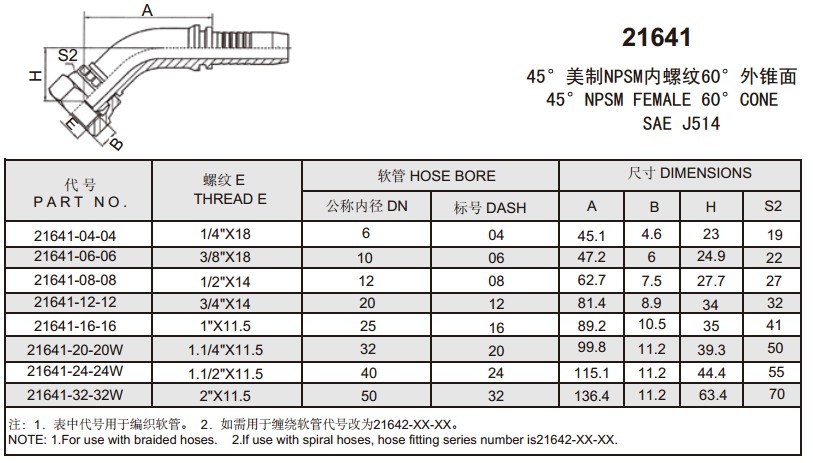 21641 45°美制NPSM內(nèi)螺紋60°外錐面