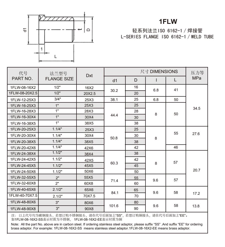 1FLW 輕系列法蘭IS0 6162-1/焊接管