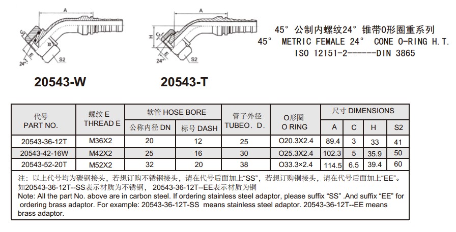 20543-W 20543-T 45°公制內(nèi)螺紋24°錐帶O形圈重系列