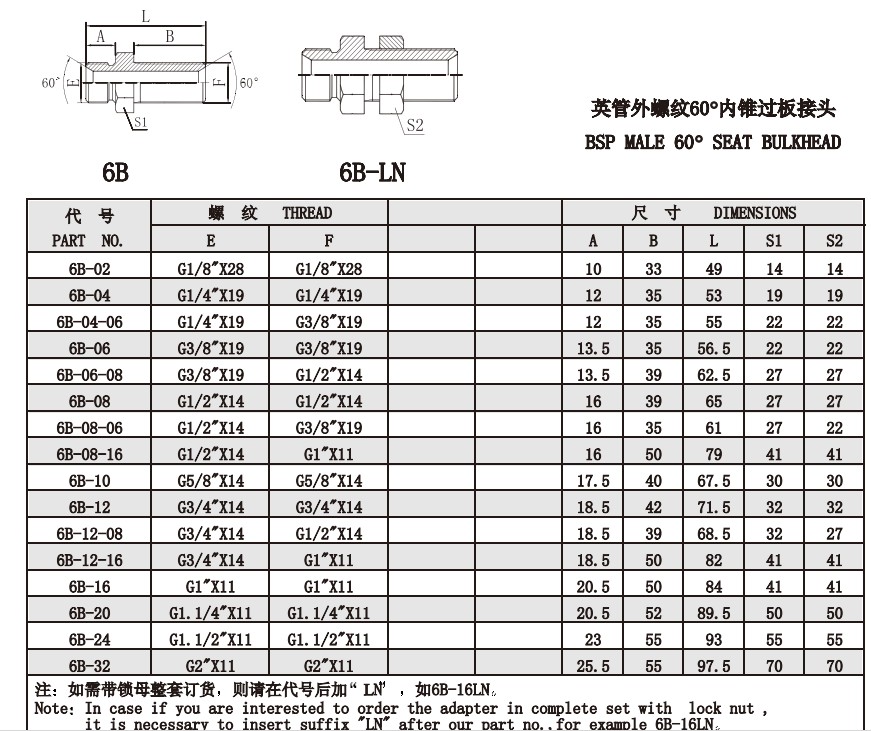 6B 6B-LN 英管外螺紋60°內(nèi)錐過(guò)板接頭
