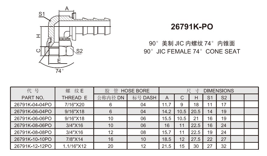 26791-PO 90°美制JIC內(nèi)螺紋74°內(nèi)錐面