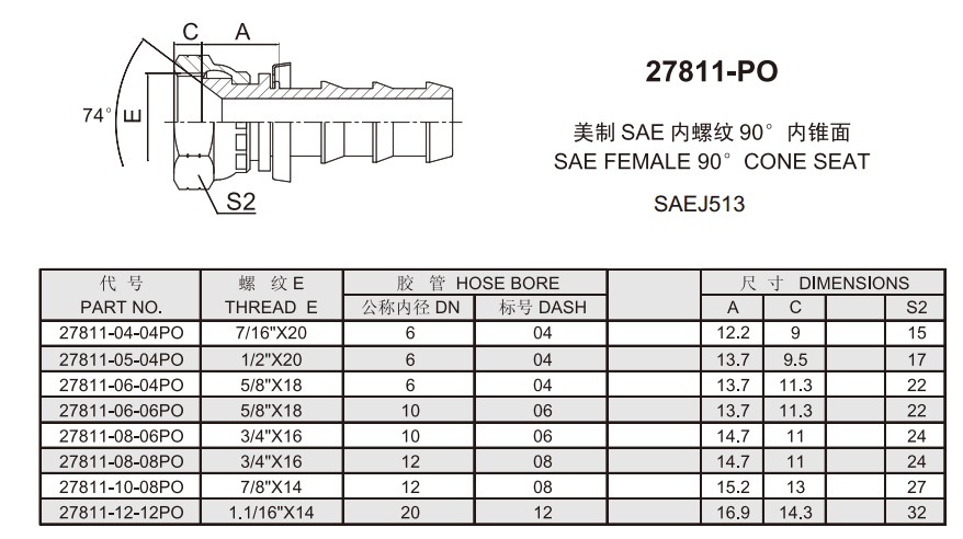 27811-PO 美制SAE內(nèi)螺紋90°內(nèi)錐面