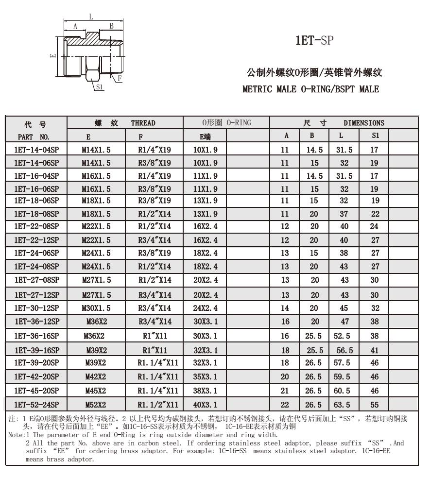 1ET-SP 公制外螺紋O形圈/英錐管外螺紋