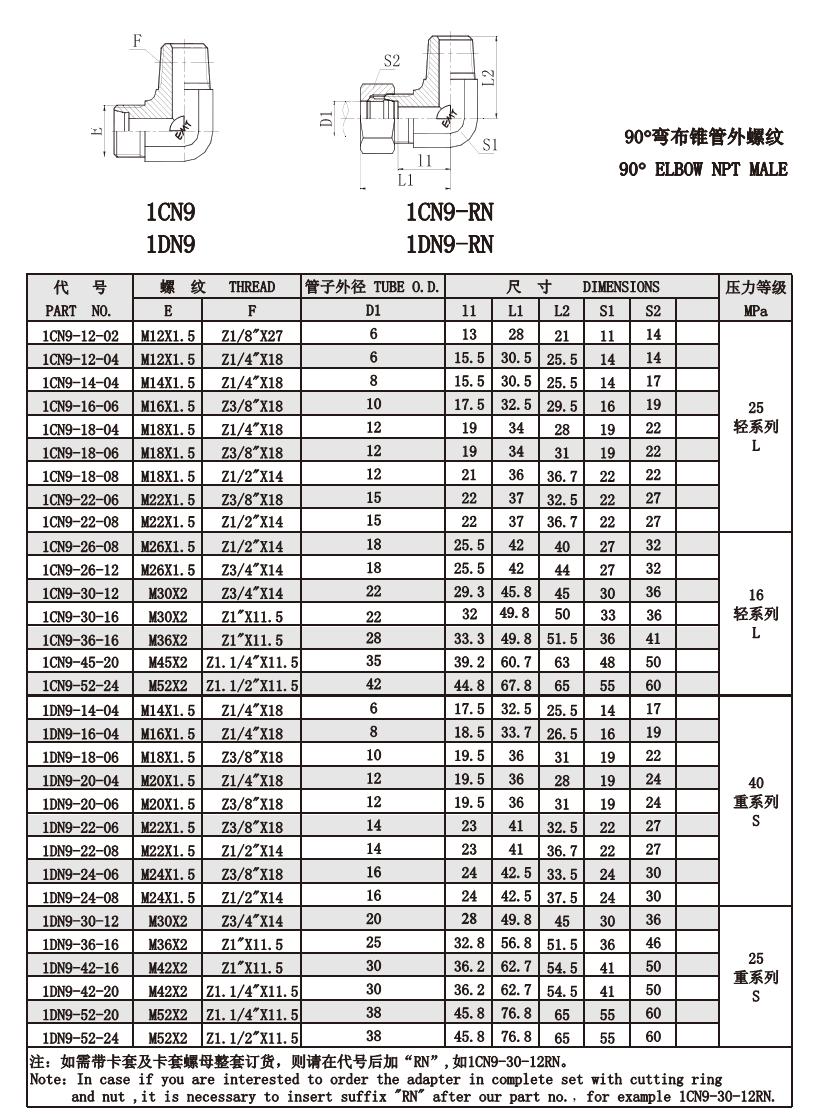 1CN9 1DN9 90°彎布錐管外螺紋