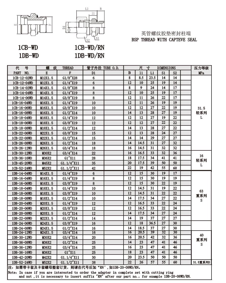 1CB-WD 1DB-WD 英管螺紋膠墊密封柱端