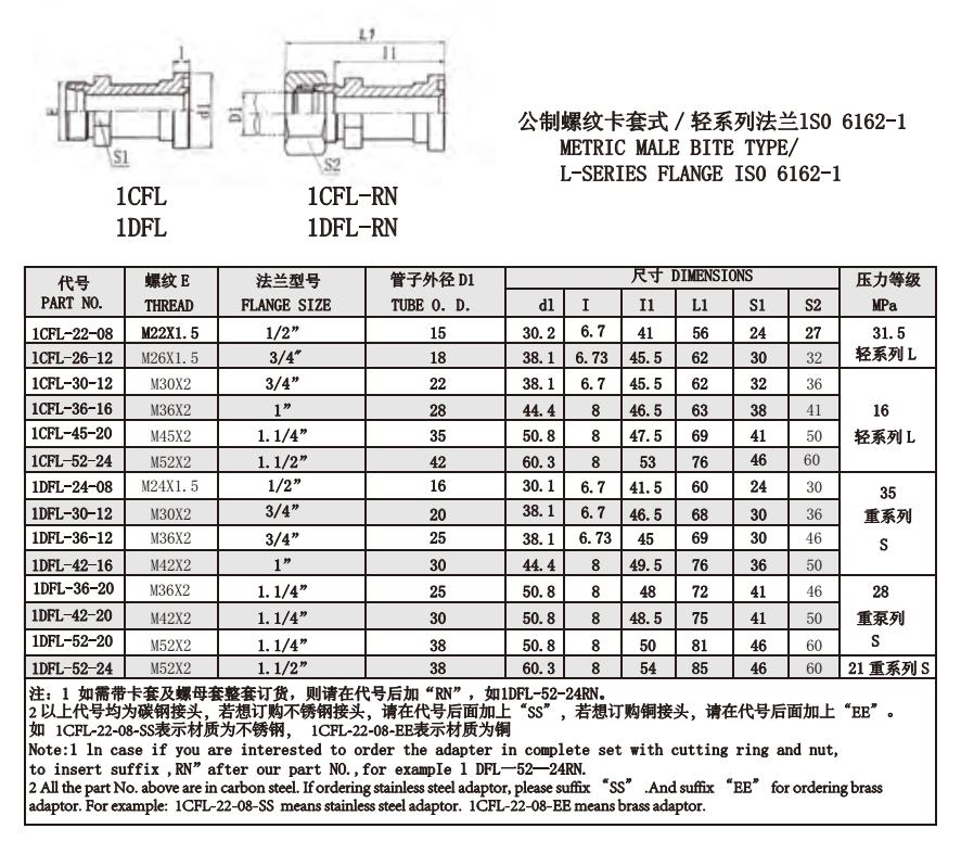 1CFL 1DFL 公制螺紋卡套式/輕系列法蘭lS0 6162-1