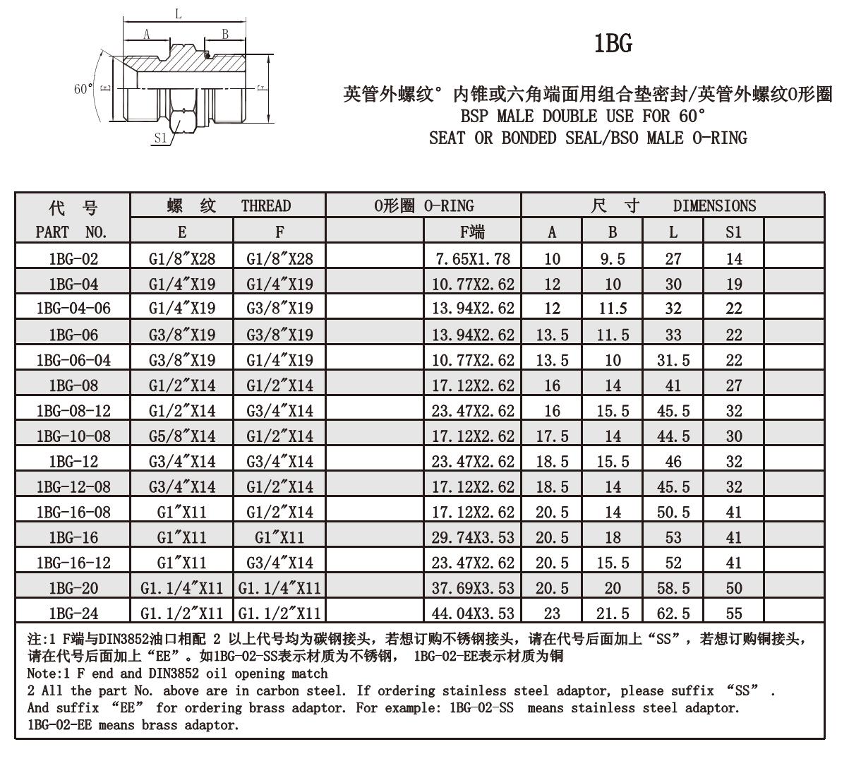 1BG 英管外螺紋°內(nèi)錐或六角端面用組合墊密封/英管外螺紋O形圈