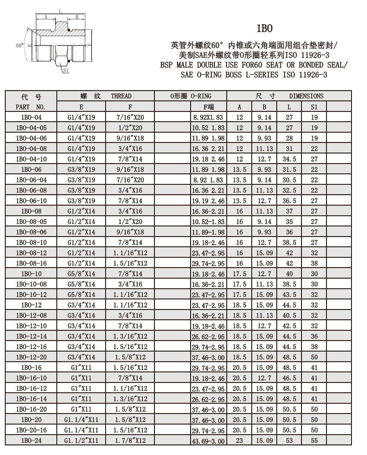 1BO 英管外螺紋60°內(nèi)錐或六角端面用組合墊密封/ 美制SAE外螺紋帶O形圈輕系列ISO 11926-3