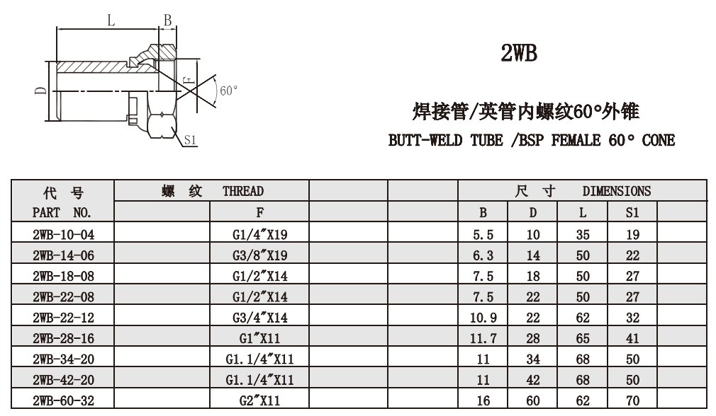 2WB 焊接管/英管內(nèi)螺紋60°外錐