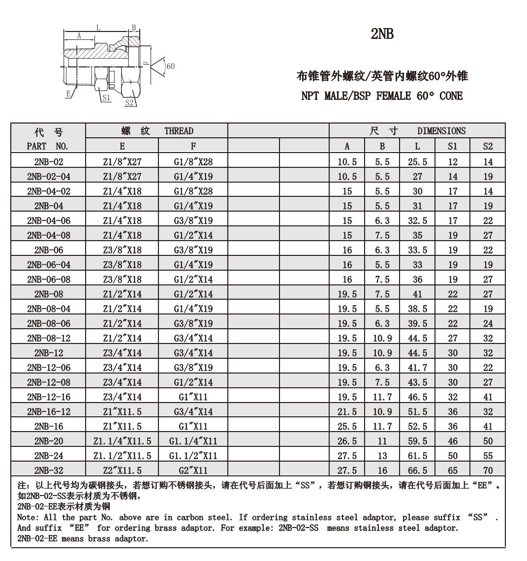 2NB 布錐管外螺紋/英管內(nèi)螺紋60°外錐
