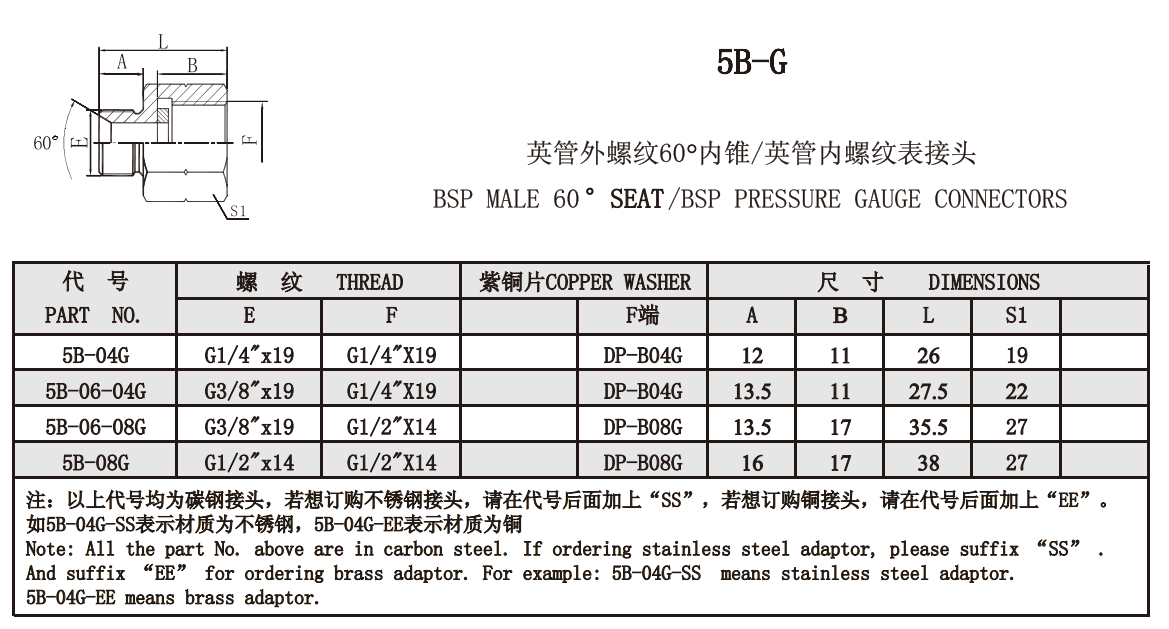 5B-G 英管外螺紋60°內錐/英管內螺紋表接頭