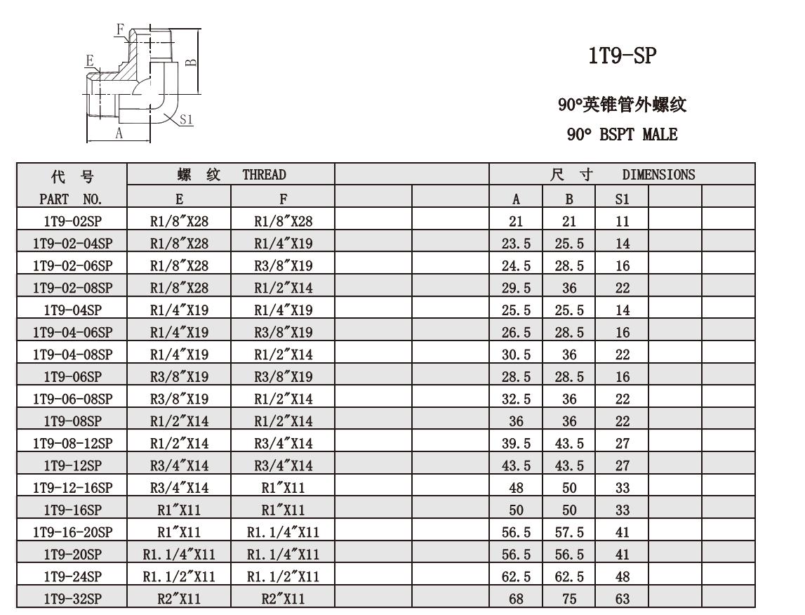 1T9-SP 90°英錐管外螺紋