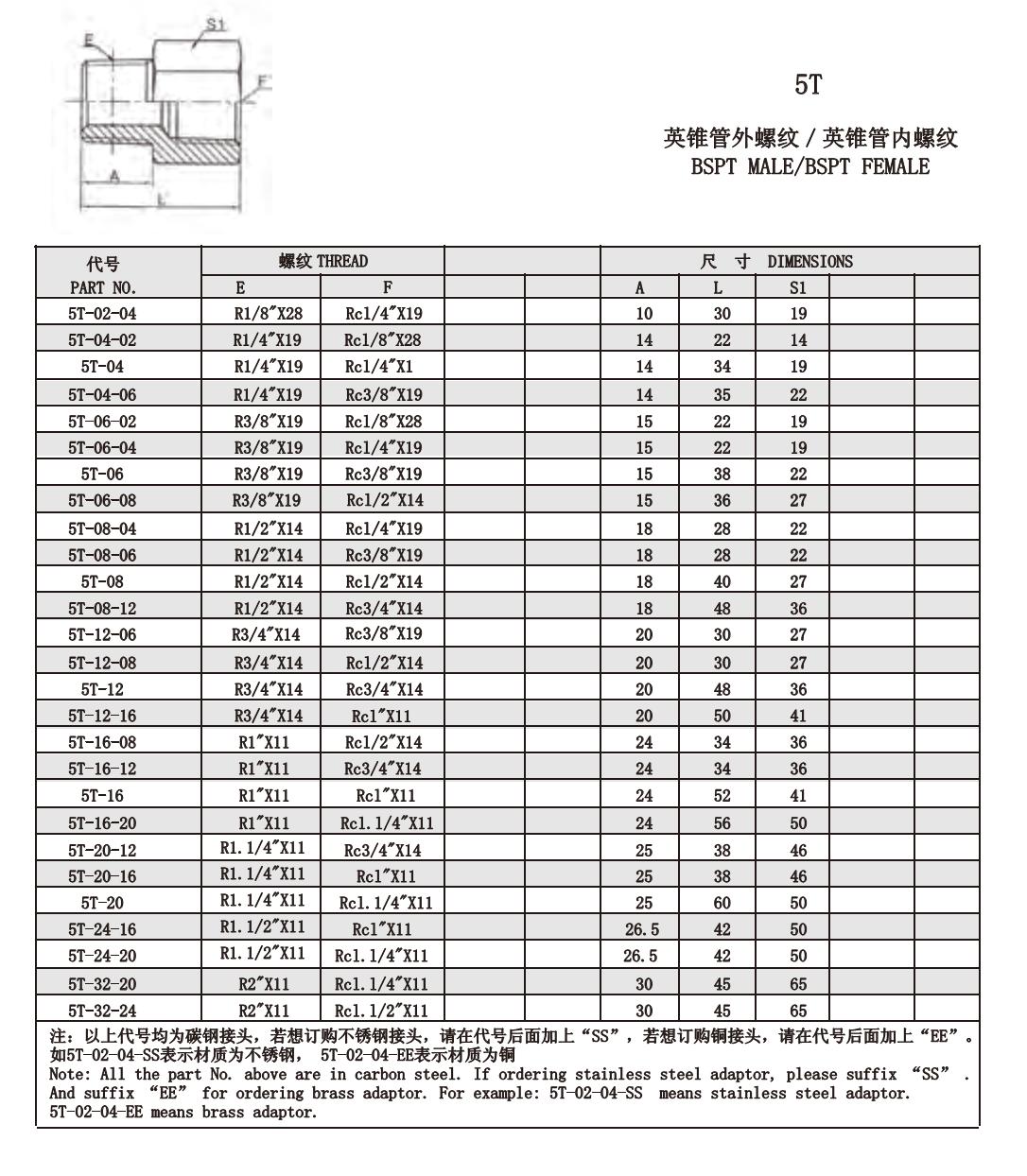 5T 英錐管外螺紋/英錐管內(nèi)螺紋