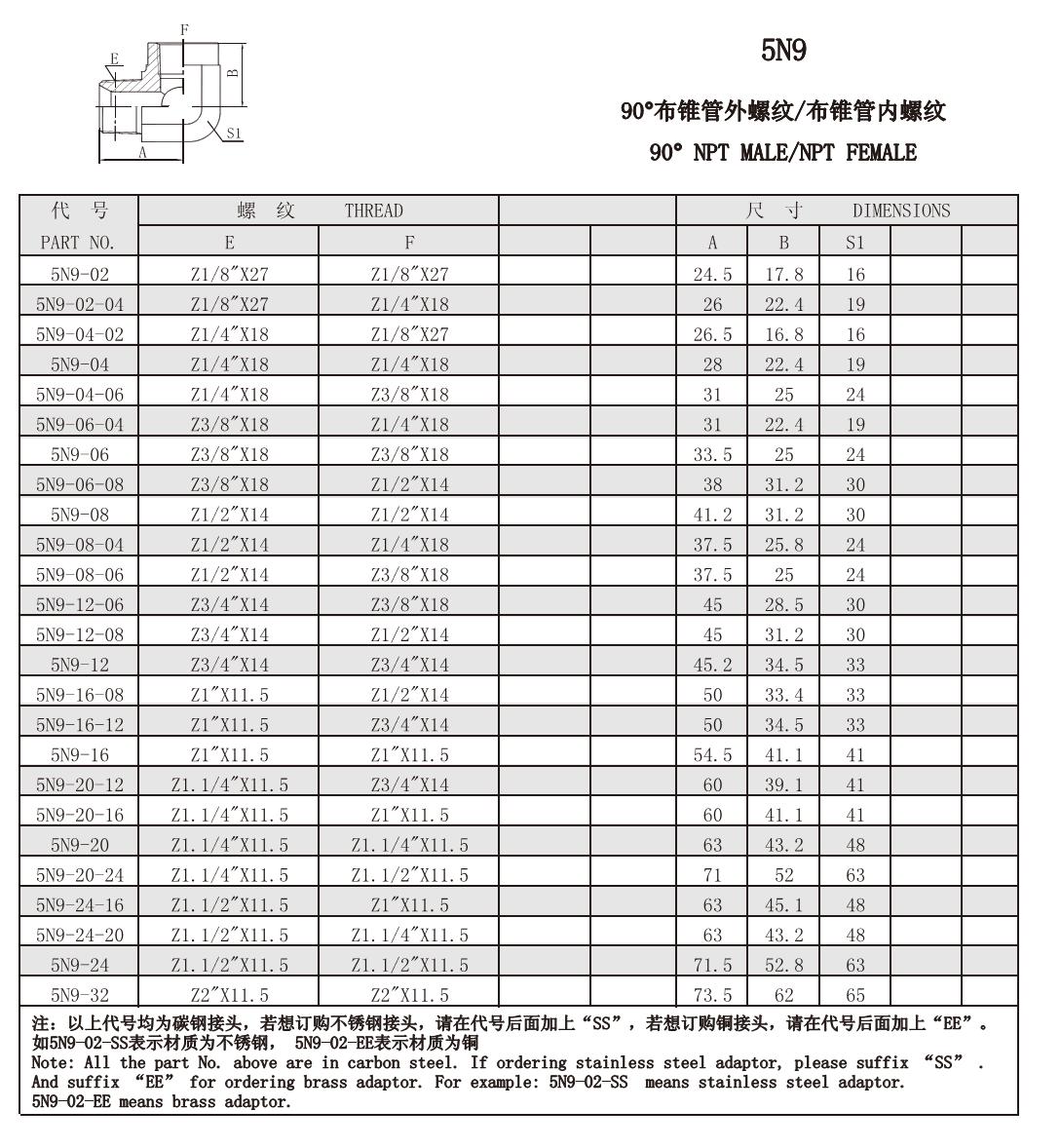 5N9 90°布錐管外螺紋/布錐管內(nèi)螺紋