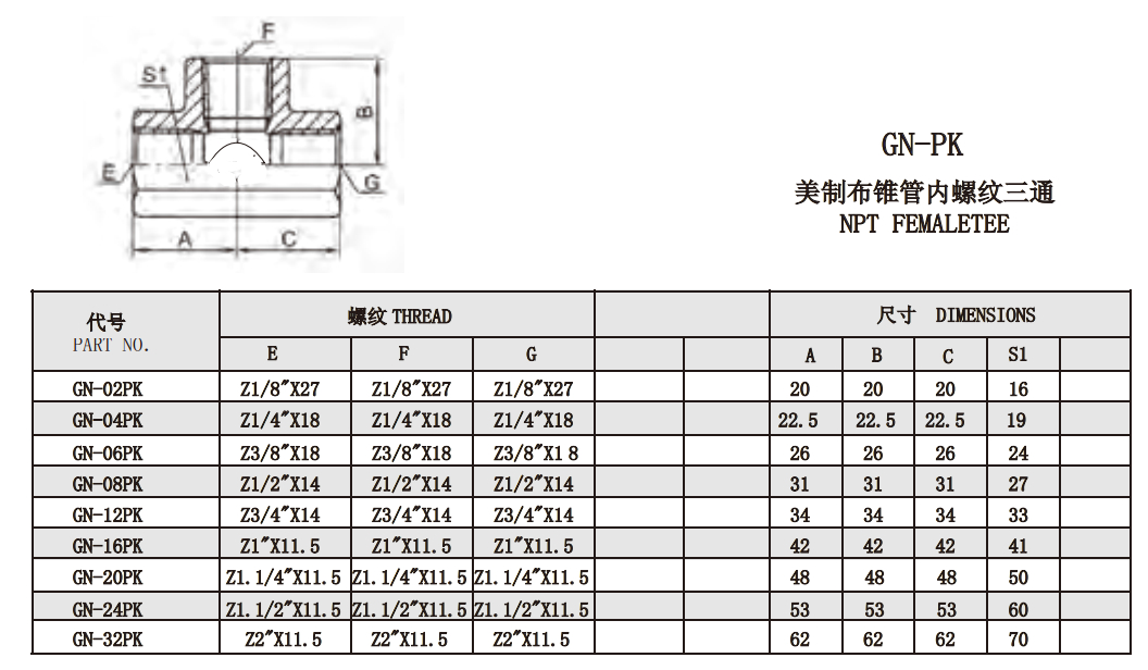 GN-PK 美制布錐管內(nèi)螺紋三通