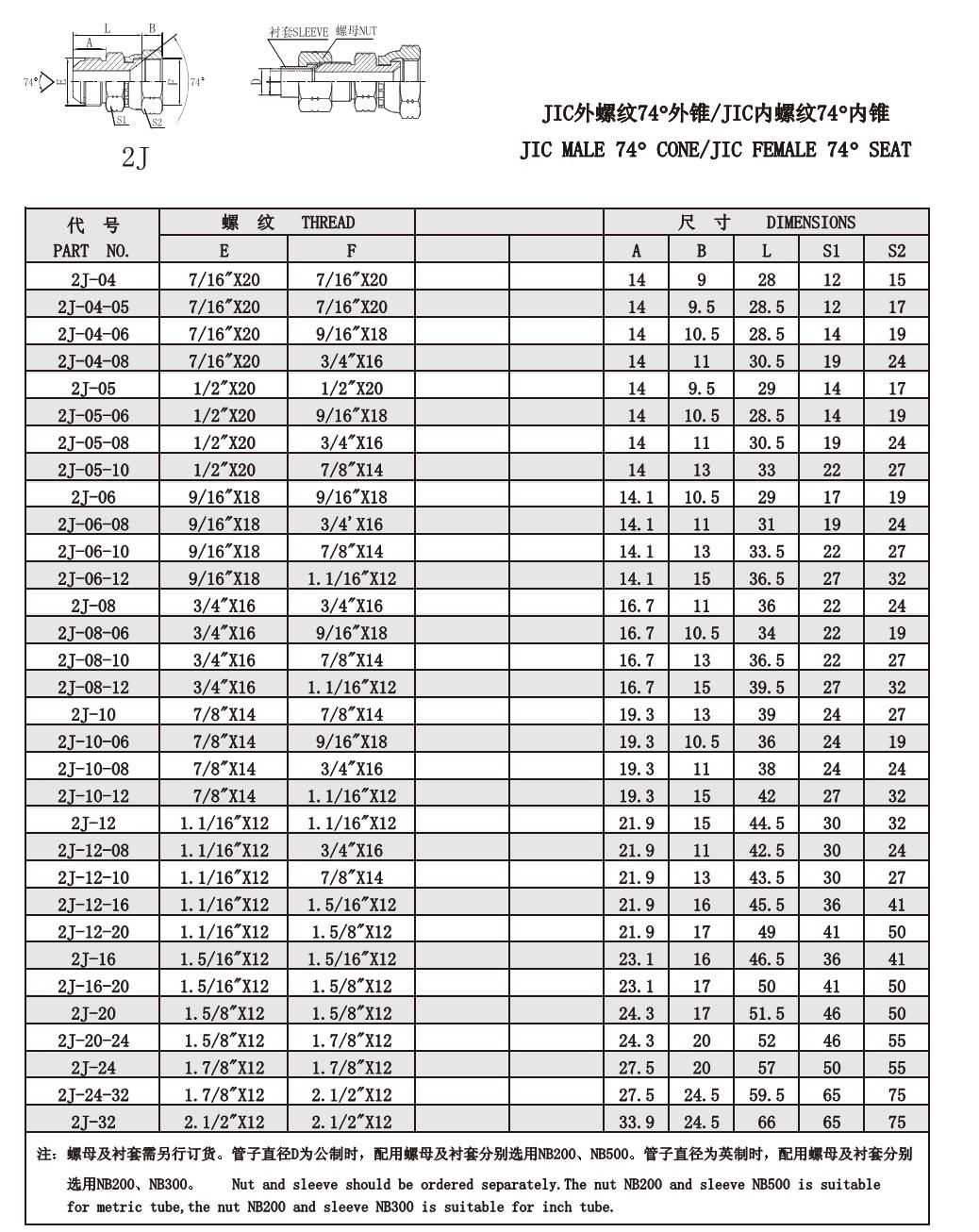2J JIC外螺紋74°外錐/JIC內(nèi)螺紋74°內(nèi)錐