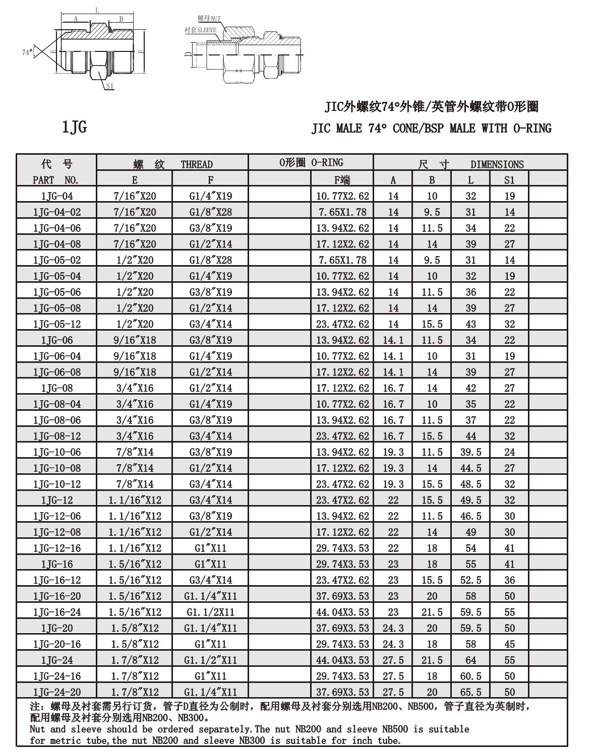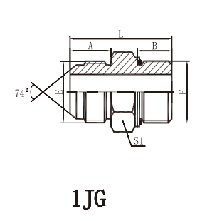 1JG 外螺紋74°外錐/ 英管外螺紋帶O形圈