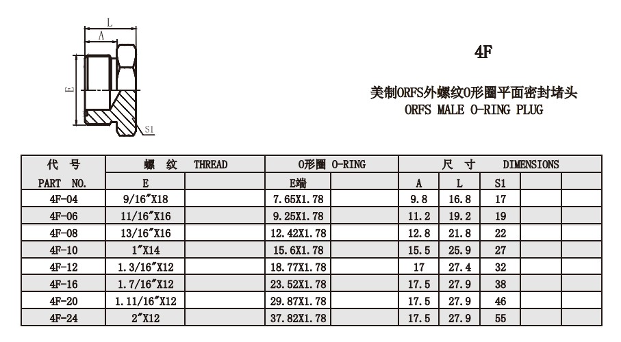 4F 美制ORFS外螺紋O形圈平面密封堵頭
