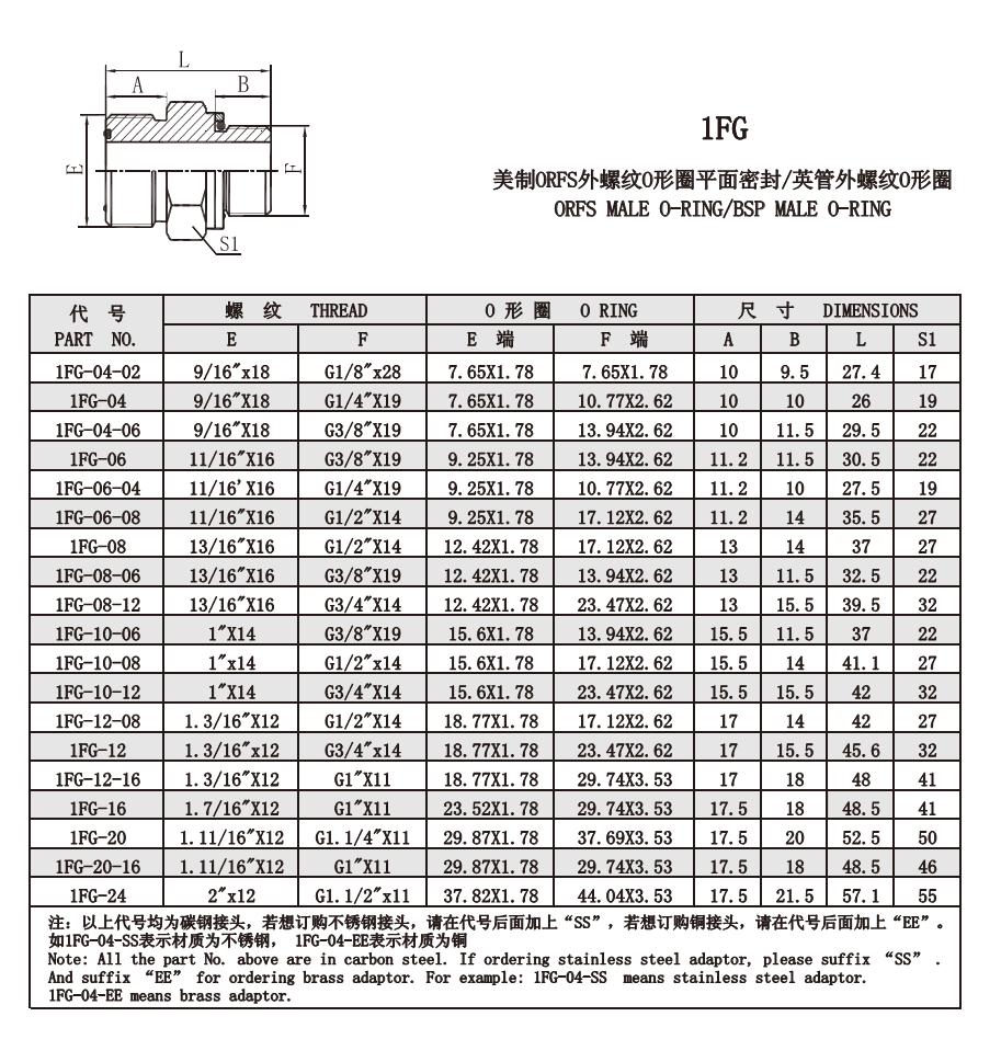 1FG 美制ORFS外螺紋O形圈平面密封/英管外螺紋O形圈