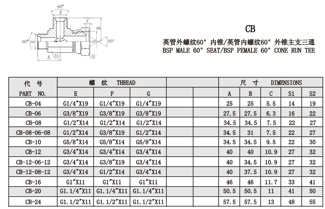 CB 英管外螺紋60°內(nèi)錐/英管內(nèi)螺紋60°外錐主支三通