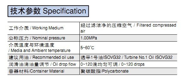 潤滑油滴油量調(diào)節(jié) / Oil drop ?ow 0~120滴均勻可調(diào) / 0~120 drops