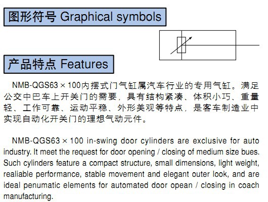 技術(shù)參數(shù) Specification項(xiàng)目Item 參數(shù) Specification缸徑 Dia 63工作介質(zhì) / Working medium: 干燥潔凈含油霧的壓縮空氣Dry and