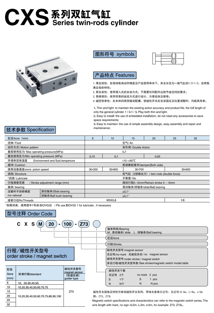 雙缸氣缸CXS系列,薄型雙桿雙氣缸結(jié)構(gòu),不搖轉(zhuǎn)精度高及2倍出力,側(cè)面負(fù)荷抵抗力強(qiáng)。非標(biāo)氣缸定制可按圖非標(biāo)加工