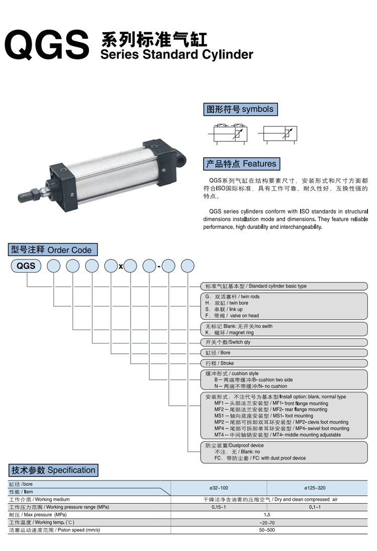 QGS 系列氣缸在結(jié)構(gòu)要素尺寸、安裝形式和尺寸方面都符合ISO國際標(biāo)準(zhǔn),具有工作可靠、耐久性好、互換性強的特點。可按圖非標(biāo)定制來圖加工,按您的技術(shù)參數(shù)氣缸訂做
