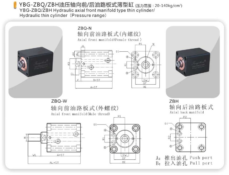 YBG-ZBQ/ZBH油壓軸向前/向后油路板式薄型缸 | |