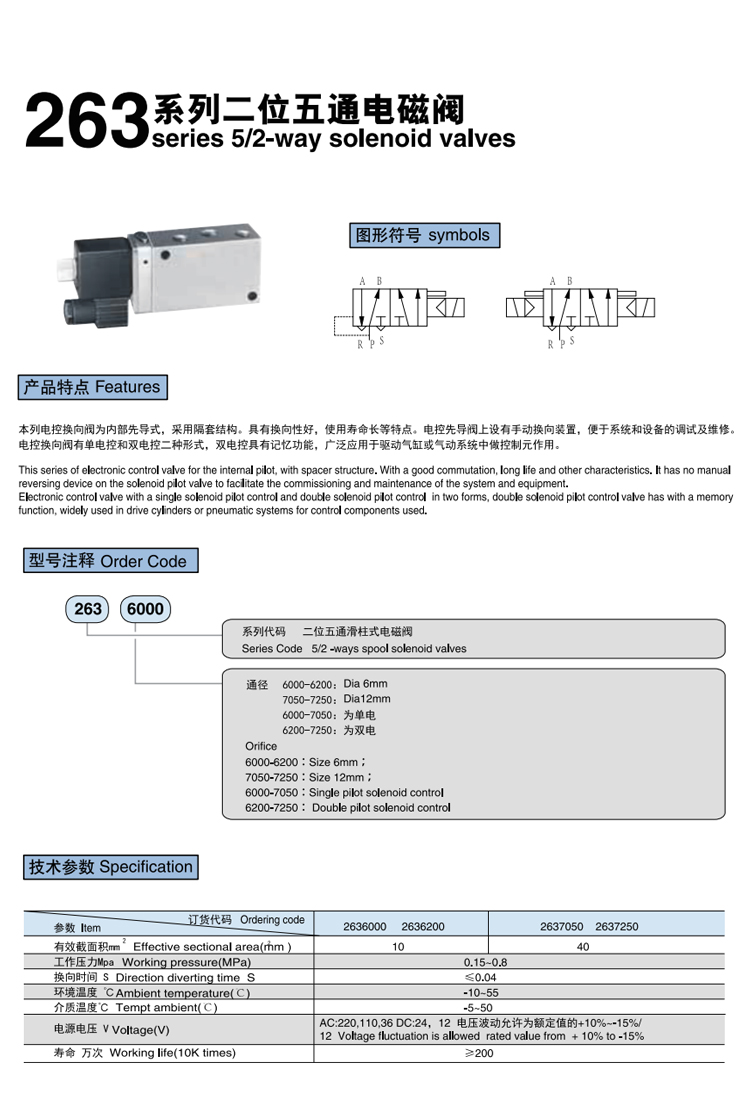 263系列 二位五通換向電磁閥