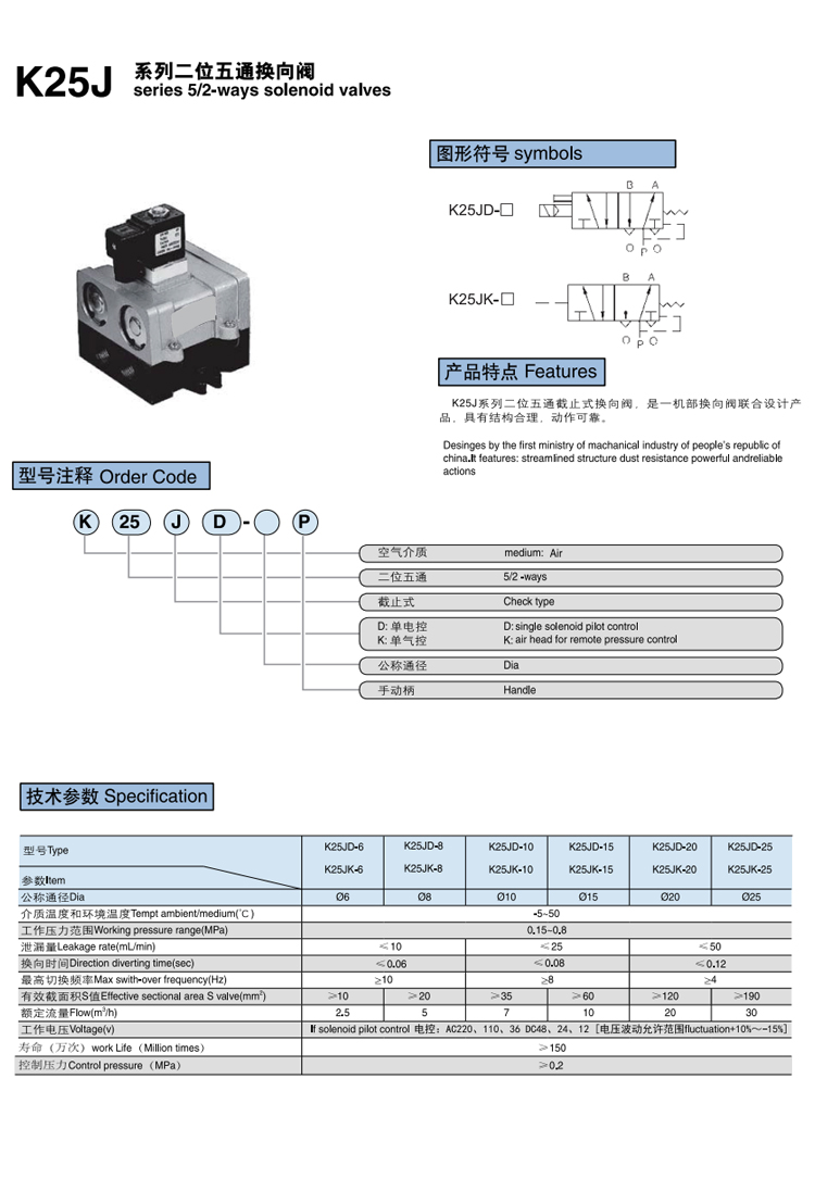K25J系列 二位五通截止式換向閥 產(chǎn)品特點(diǎn):K25J系列二位五通截止式換向閥,是一機(jī)部換向閥聯(lián)合設(shè)計(jì)產(chǎn)品,具有結(jié)構(gòu)合理,動(dòng)作可靠。